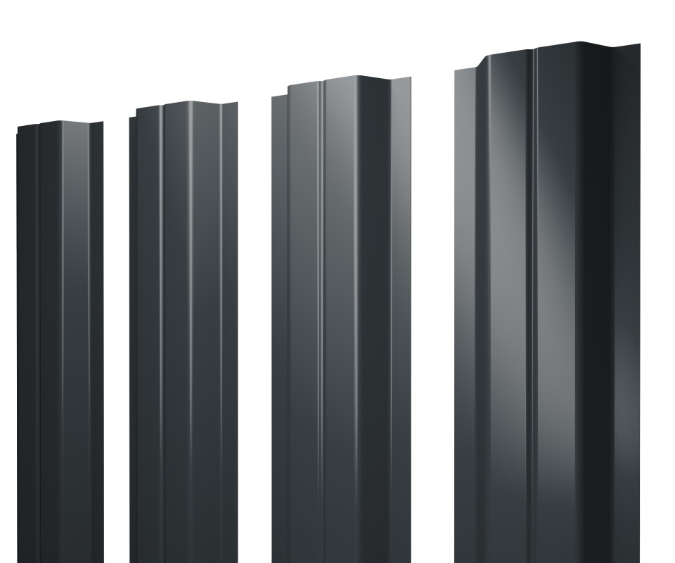 - Штакетник П-образный A с прямым резом 0,5 Drap RAL 7024 мокрый асфальт