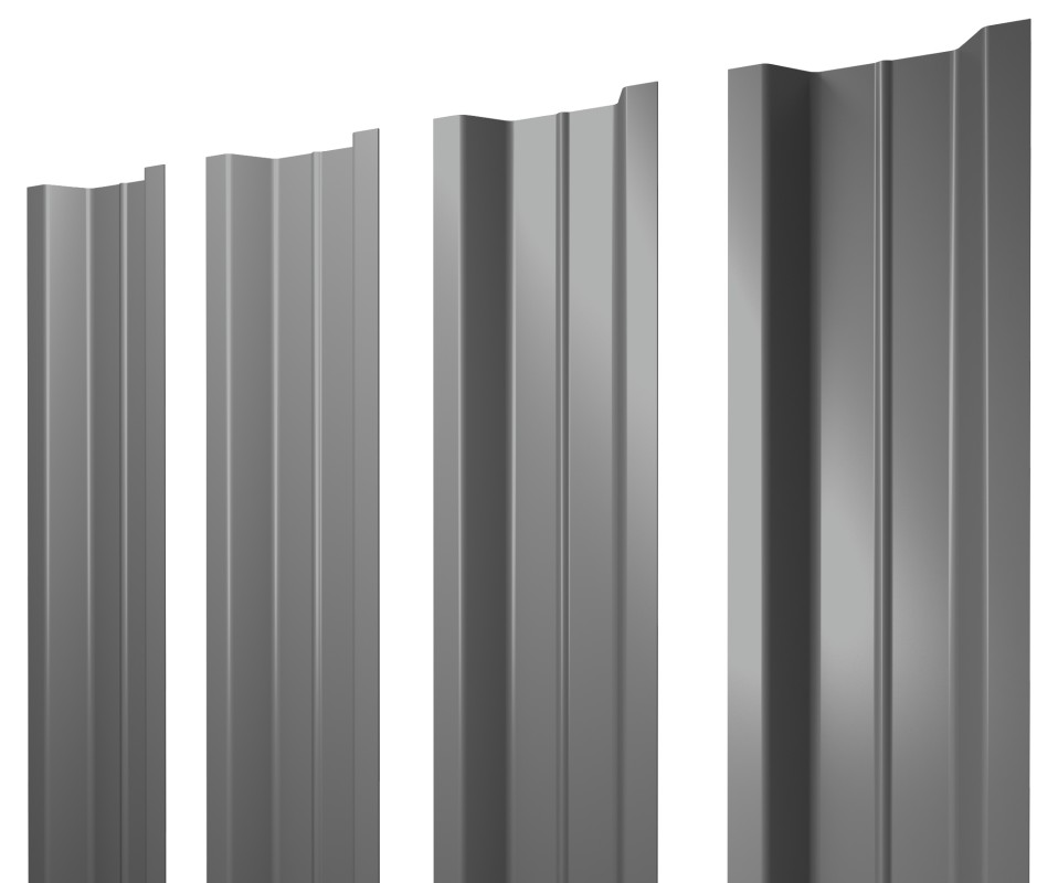 - Штакетник П-образный В с прямым резом 0,45 PE RAL 9006 бело-алюминиевый