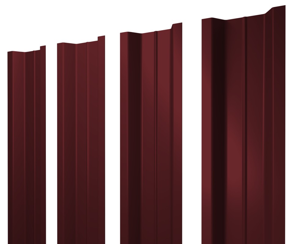 - Штакетник П-образный В с прямым резом 0,45 PE-Double RAL 3005 красное вино