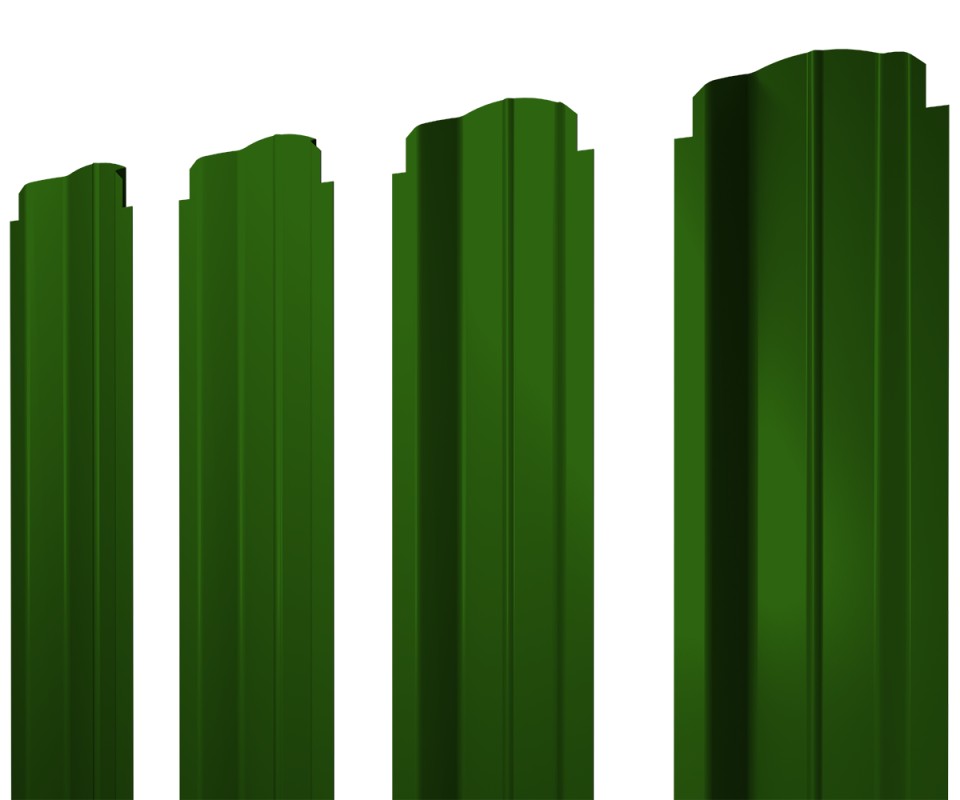 - Штакетник П-образный B фигурный 0,45 PE RAL 6002 лиственно-зеленый